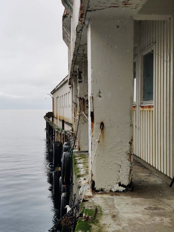 Lofoottien ajokuntoiset tiet päättyvät Å-kylään, vaikka itse saariryhmä jatkuu tästä vielä pidemmälle. Tienpäästä löytyy mukavan kokoinen parkkipaikka. Lähdemme kävelemään kylässä pienessä vesisateessa ja vain ihastelemme söpöjä punaisia kalastajamökkejä, kuivakaloja ja ikkunalaudoilla pesiviä lokkeja. Kapuamme pienelle kukkulalle ihastelemaan maisemia ja jatkamme kohti kartallakin näkyvää Å:n näköalapaikkaa. Valitettavasti sumuinen sää estää näkymän pidemmälle vuorijonoa pitkin.