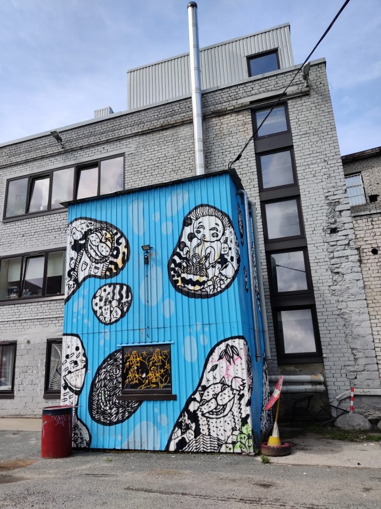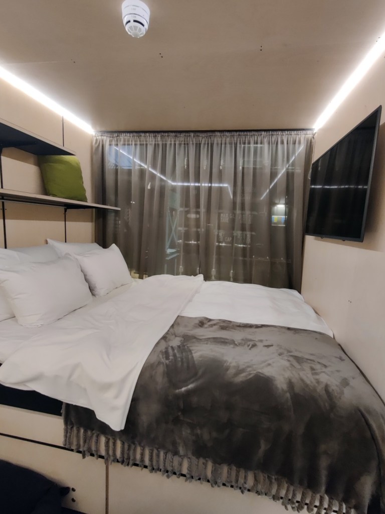 Ensimmäinen yö vietettiin kivassa konttihotellissa Telliskivessä. Hektor Container Hotel on käytännössä iso halli, jonka sisällä on merikontteja, joista jokainen on yksi hotellihuone. Hotelli on ainoita Telliskiven keskustassa ja sijaitsee sitä myöden kävelyetäisyyden päässä kaikesta tarpeellisesta. Hotelli mainostaa itseään myös hyvänä etätyöskentelypaikkana, jota ilmeisesti melko paljon Tallinnassa harrastetaan. Yhteisiä tiloja löytyy kiitettävästi, niistä ehditään testata oleskelualuetta ja joogahuonetta. Yö täällä maksoi 110€, johon kuului aamiainen ja lemmikistä veloitettiin lisäksi 15€.