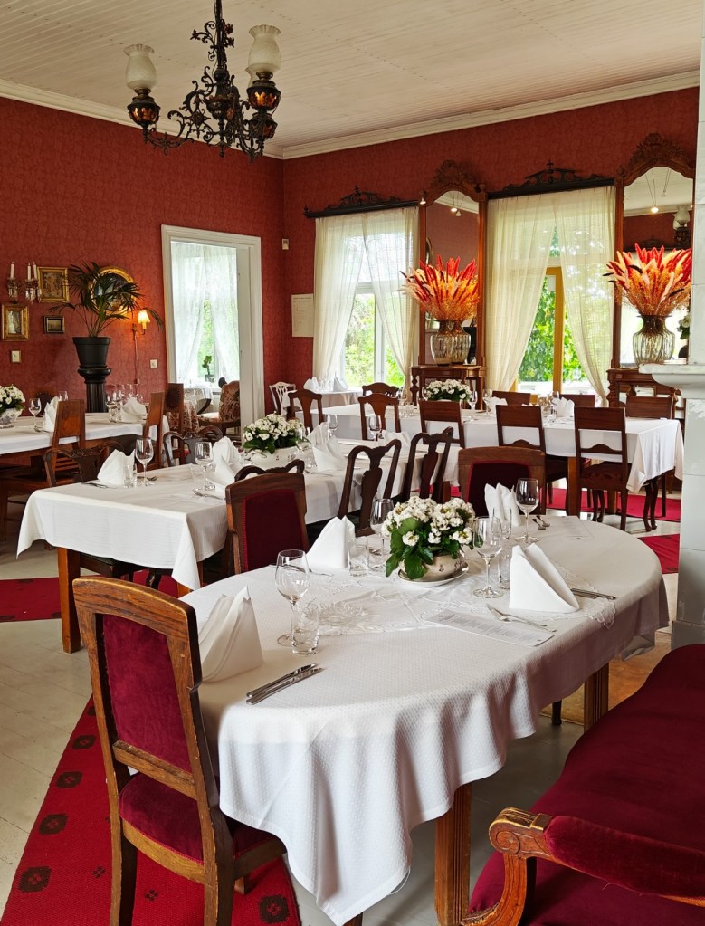 Ruoissa on paljon perinnemakuja kuten herkulliset mummonkurkut, erilaisia pateita ja kesäinen perunasalaatti. Paikalliset ruoka-aineet näkyvät myös vahvasti: ohrasalaattia oman pellon ohrasta, itse tehtyä fetaa, puutarhurin salaattia, kartanon leipävalikoima, lähitilan karitsaa ja kasvimaan terveiset.