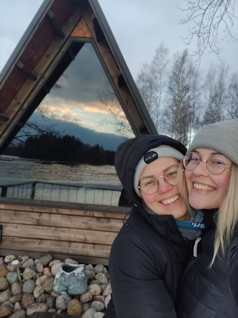 Kotkassa meillä oli ihana Laawu-majoitus, jossa tähän aikaan vuodesta ei ollut ketään muita ja saimme nauttia koko tiluksista yksin. Tunnelmallinen tynnyrisauna ja kiva takkahuone, jossa voitiin kirjoitella rauhassa olivat ihanat. Hieman ikävämpi käänne viikonlopussa oli se kun Möhkö söi ensimmäisenä iltana koko viikonlopun ruoat, eli kerralla viisi annosta ja siivosin yön aikana jotkut viidet oksennukset… Onneksi ei käynyt huonommin! Ja Aliisa nukkui rauhaisesti kaiken tämän ohi. 😅