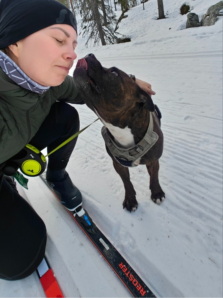 Möhkön kanssa päästiin harmiksemme hiihtelemään vasta Pyhällä ihan loppukaudesta. Tehtiin pari pientä lenkkiä ja yksi melkein 10 km lenkki.