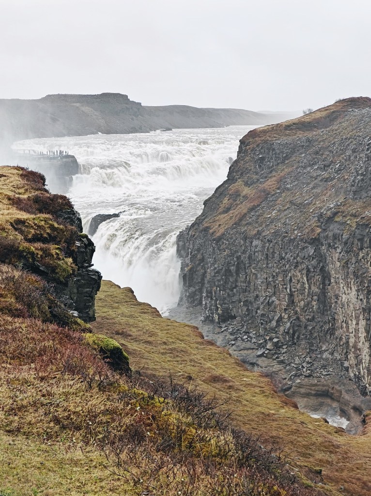 Seuraavaksi suuntasimme Geysirin geotermiselle alueelle, missä aktiivinen Strokkur purkautuu näyttävästi noin 10 minuutin välein. Päivän huipensi Gullfoss -vesiputous, jonka kuuluisa kultainen sumu jäi tällä kertaa sateen peittoon.